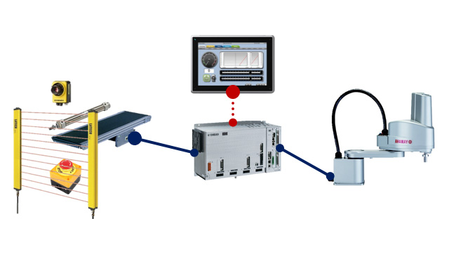 It can be connected easily with the robot controller using just one LAN cable. Cost down is possible as the single device without using PLC.