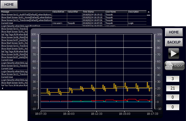 The audit tracking function that enables verification on information such as what operation was conducted by who and when comes as standard. It can be used when performing cause analysis on defects and providing feedback during operator education. The function is important for improving the general facility operation rate.