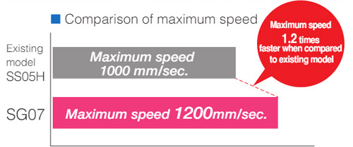 The speed is increased to a level 1.2 times faster than that of the existing model SS05H.